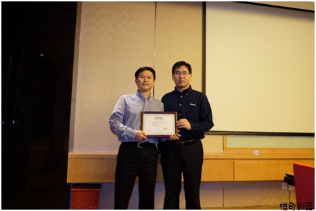 2014年11月21日,上海恒奇儀器儀表有限公司左總,受邀參加了美國必能信(BRANSON)在廈門明發(fā)戴斯大酒店舉辦的 “2014年必能信中國區(qū)商業(yè)產(chǎn)品代理商大會”,并且接受美國必能信(BRANSON)亞洲區(qū)產(chǎn)品總監(jiān)David Lee頒發(fā)的“2014年度杰出代理商獎”,以表彰恒奇公司在2014年所取得國內(nèi)銷售額第一的杰出銷售業(yè)績。隨后接受了由必能信大中國區(qū)銷售總監(jiān)James Dong頒發(fā)的“2015年必能信產(chǎn)品代理證書”。