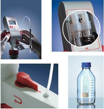 用VITLAB “continuous”數字滴定器,你可以進行連續的滴定并得到可靠的結果,為您在這個過程中節省大量時間。獲得專利的雙活塞泵設計使得溶液得以持續測量無需重復灌裝。此外,這種創新技術大大提高了安全性,它的緊湊型結構和低重心構造極大地降低了液體泄露的風險。排液管的長度和高度都可以調節,使其可適用于各種高度的瓶子。獲得專利的回流閥設計具有兩大優點:防止貴重試劑的損失和液體飛濺。另外還具有簡單易用的校準功能。誤差全部都在德國DIN EN ISO 8665-3標準要求的范圍內。