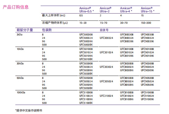 • Amicon Ultra超濾管滿足從0.5-15mL樣本的處理