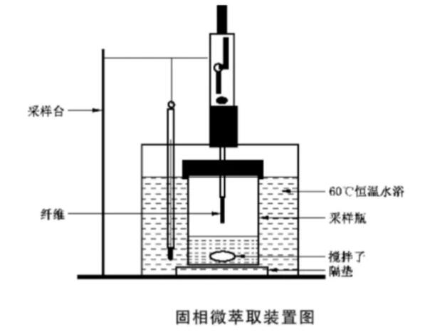 e)經15s加熱攪拌均勻后,壓下萃取纖維至頂部空間進行萃取;