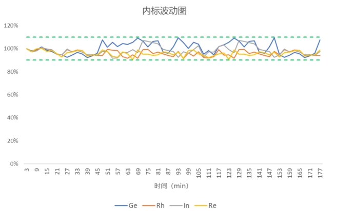 最后一個難點內(nèi)標穩(wěn)定性,因為土壤基體和曲線基體不同,導致在土壤分析過程中內(nèi)標容易漂移,而儀器的穩(wěn)定性則是分析的關(guān)鍵。